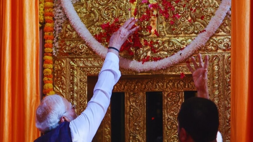 The Prime Minister also inaugurated the Suvarna Teertha Mantapa and dedicated the Kanaka Kavacha, a golden cover for the sacred Kanakana Kindi, the window associated with saint Kanakadasa’s divine darshan of Lord Krishna.