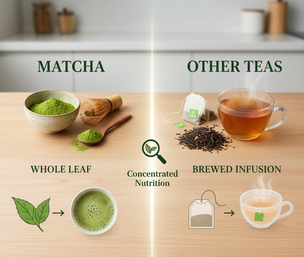Whereas green tea, herbal teas, and other health teas are popular, the key differentiation for Matcha lies in the preparation and level of concentrated benefits. Unlike common green tea, where leaves are immersed and removed, the whole powdered leaf of Matcha is utilized, offering greater amounts of antioxidants, amino acids, and nutritional content. Chamomile or peppermint herbal teas have soothing or digestive actions, but the matcha provides an interlocking set of mental focus, sustained energy, metabolism, and body detox effects, allowing it to be considered an all-in-one wellness drink and not merely a multi-purpose tea. Its bright green hue and ceremonial heritage also bring a thoughtful, ritualistic quality rarely present among other wellness teas.