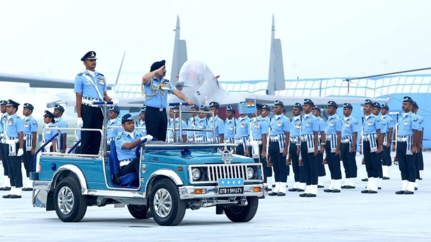 Addressing the personnel, Air Chief Marshal Singh traced the Air Force’s journey “from a modest beginning to the world’s fourth-largest Air Force.” He cited the Force’s decisive role in Operation Sindoor as proof of its offensive strength and reaffirmed faith in indigenously integrated weapon systems.