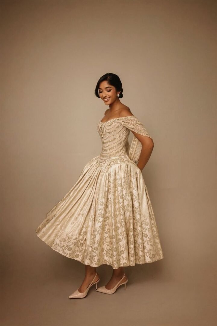 Maitreyi Ramakrishnan looked every inch the modern princess for the Vogue World event, as she arrived in a custom Manish Malhotra creation. Dressed by the designer in a look that married Indian craftsmanship with 19th-century English romance, Maitreyi, who is now a household name thanks to the series ‘Never Have I Ever’, wore a custom gold gown in a graceful fusion of heritage and haute couture.
