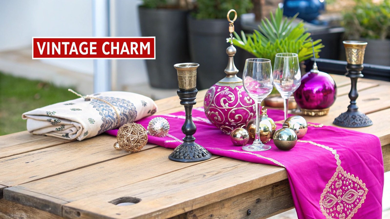 Use Deep Burgundy as your primary color in textiles like velvet ribbons, tablecloths, or plush ornaments. This creates a luxurious and cohesive foundation.