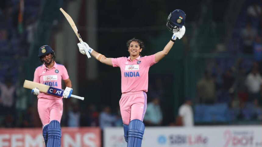 New Delhi: Smriti Mandhana lit up the third ODI against Australia with a breathtaking 63-ball 125, including a 50-ball hundred – the second-fastest in women’s ODI history. Her innings gave India a fighting chance while chasing Australia’s joint-highest ODI total of 412. Despite strong half-centuries from captain Harmanpreet Kaur and Deepti Sharma, India fell short, bowled out for 369, conceding the series 2-1.
